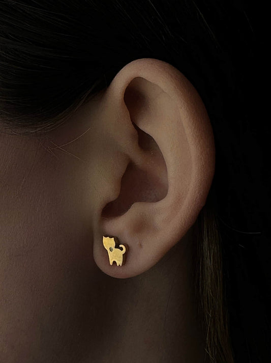 Brincos de aço dourados gato