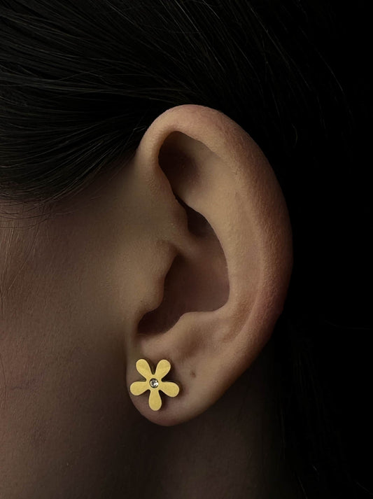Brincos de aço dourados flor e cristal