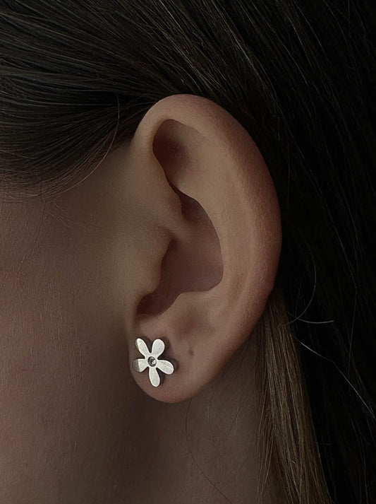 Brincos de aço prateados flor