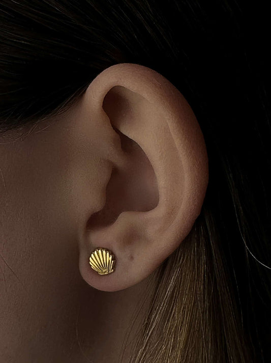 Brincos de aço dourados concha