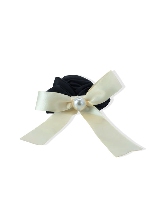 Black hair elastic with bow and pearl