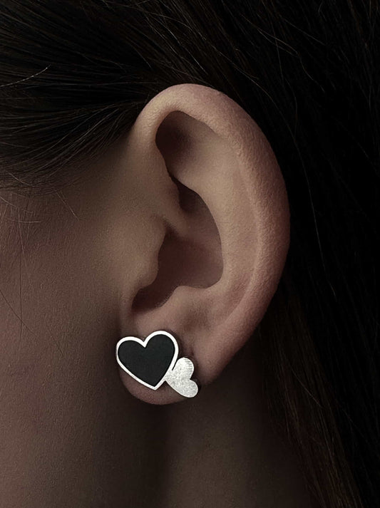 Silver steel earrings with black heart