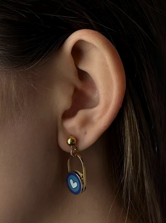 Blue heart gold steel earrings