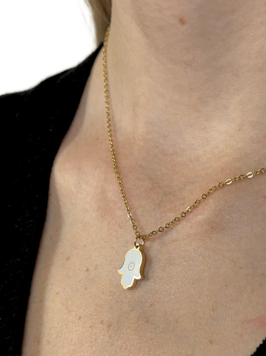 Hand of Fatima golden steel necklace