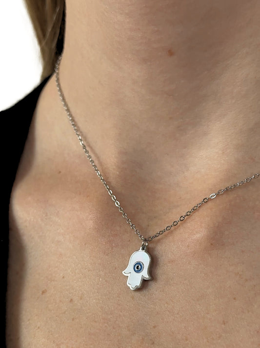 Hand of Fatima silver steel necklace