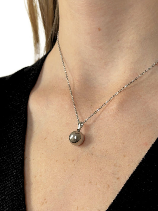 Silver steel necklace with sphere