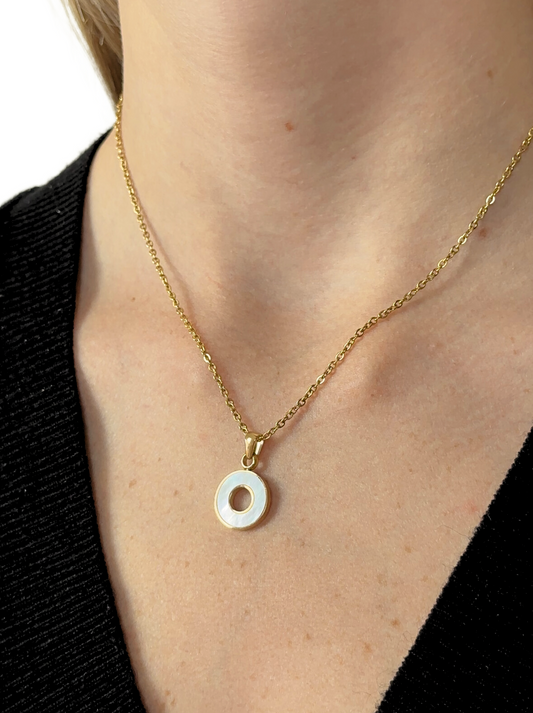 Golden steel necklace with pearl circle