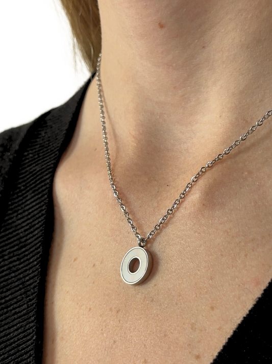 Silver steel necklace with pearl circle
