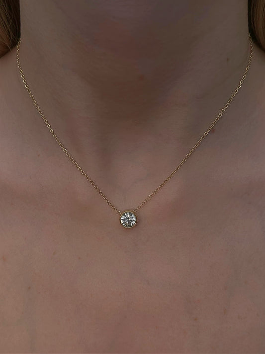 Zirconia gold steel necklace