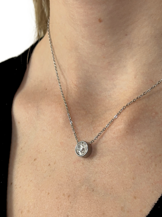 Silver steel necklace with crystal