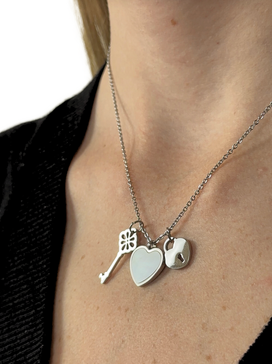 Silver steel necklace with heart