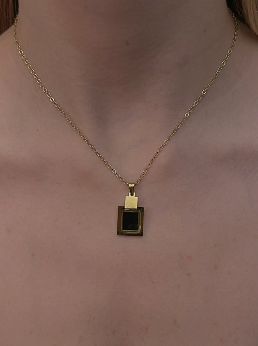 Golden steel necklace with black square
