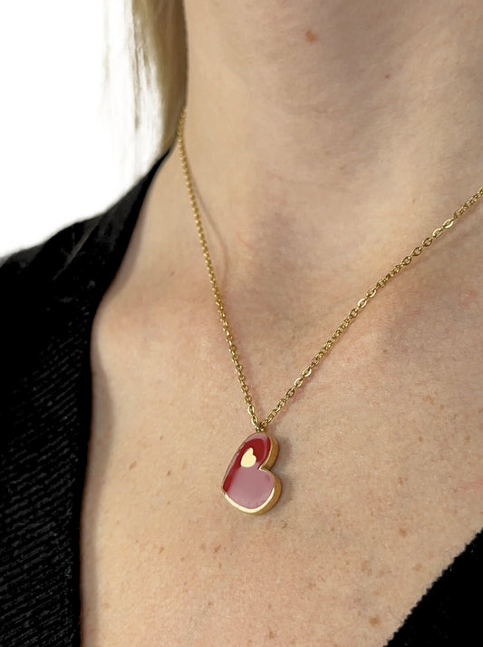 Sold outGolden steel necklace with red heart
