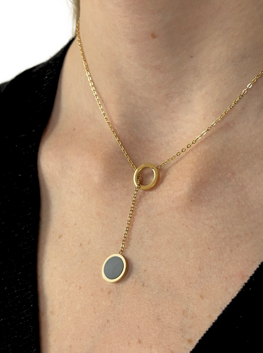 Golden steel necklace with black medal