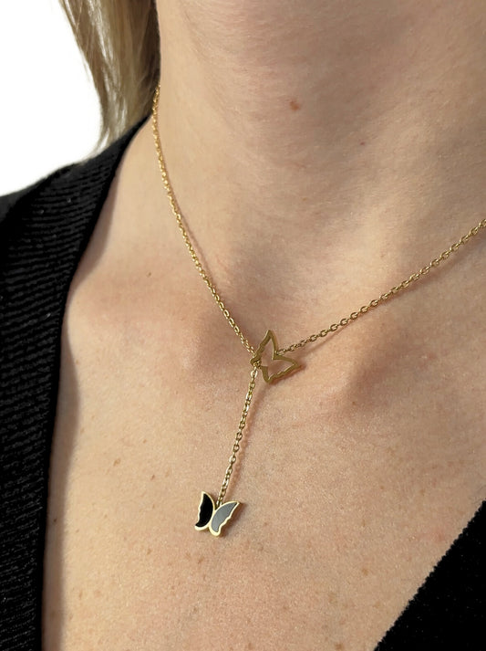 Golden steel necklace with black butterfly