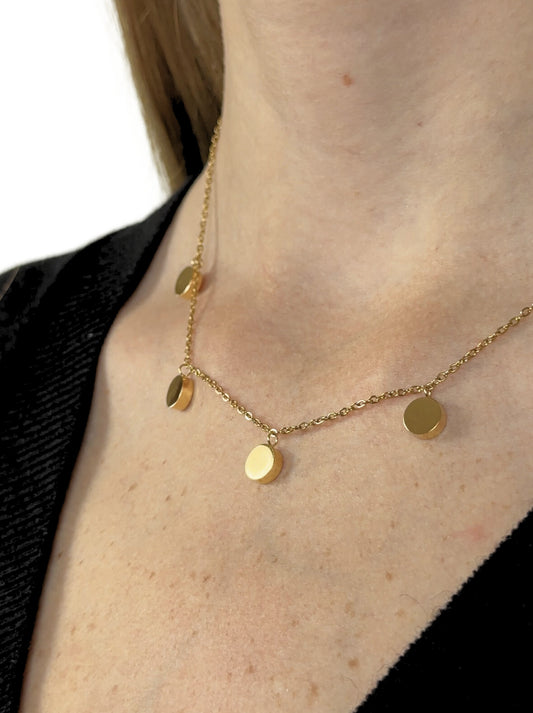 Golden steel necklace with smooth medals