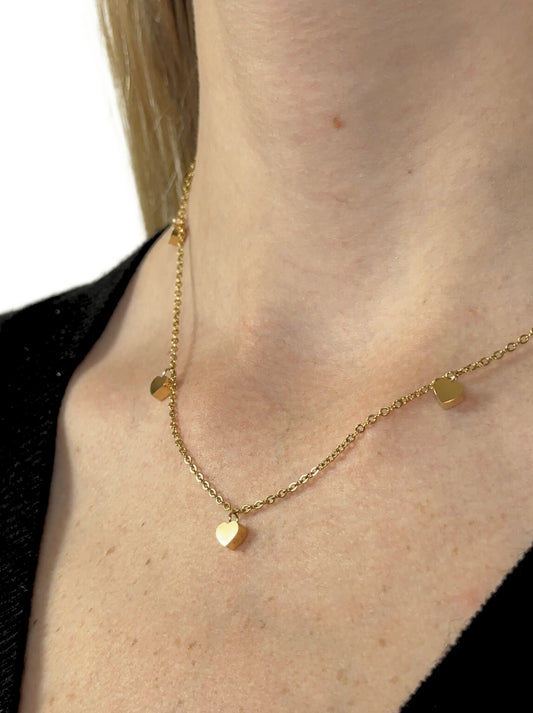Golden steel necklace with smooth hearts