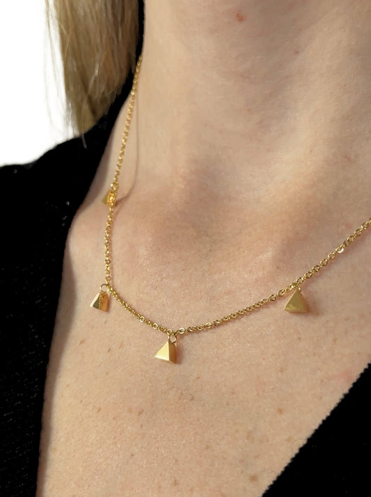 Golden steel necklace with smooth triangles