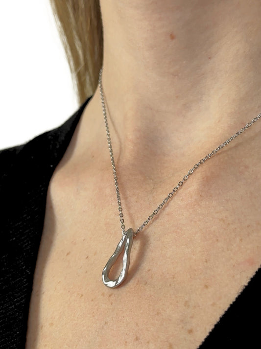 Silver steel necklace with irregular pendant