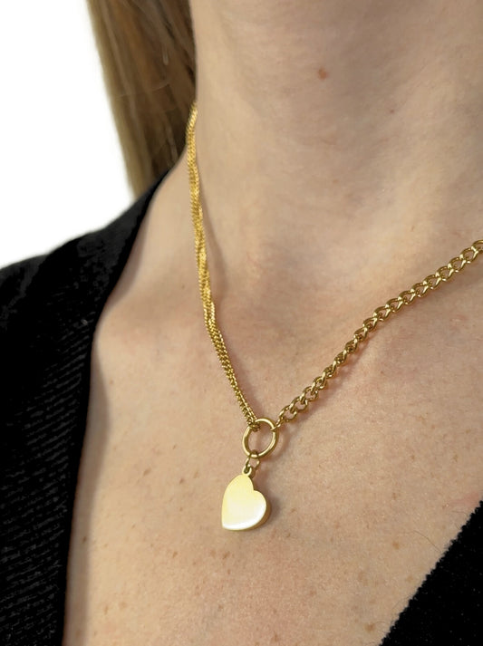 Heart gold steel necklace