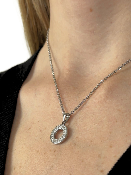 Silver steel necklace with circle of crystals