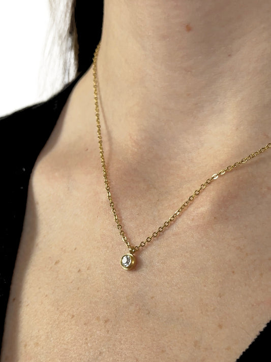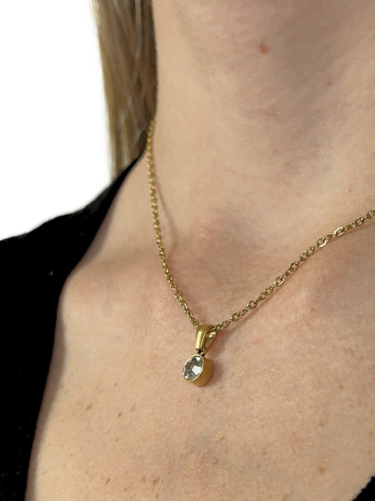 Golden steel necklace with crystal