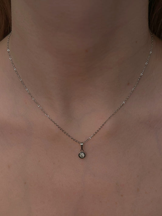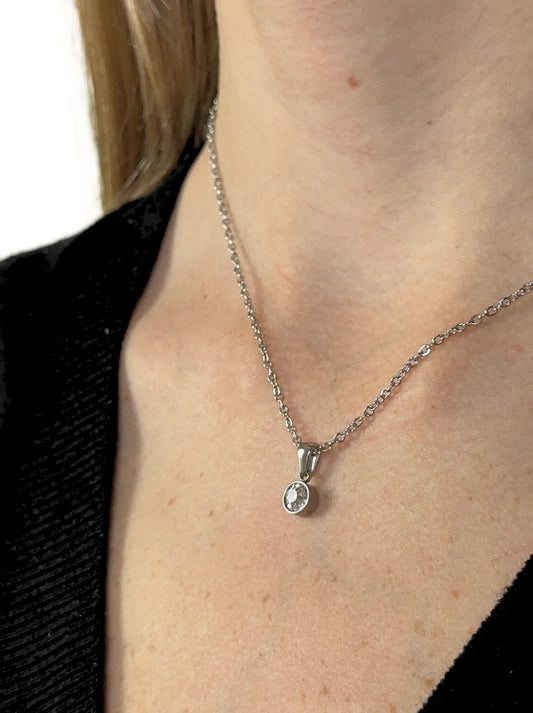 Silver steel necklace with crystal