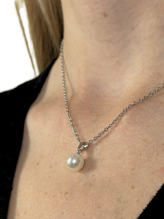 Silver steel necklace with pearl