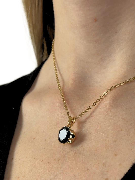 Golden steel necklace with black crystal
