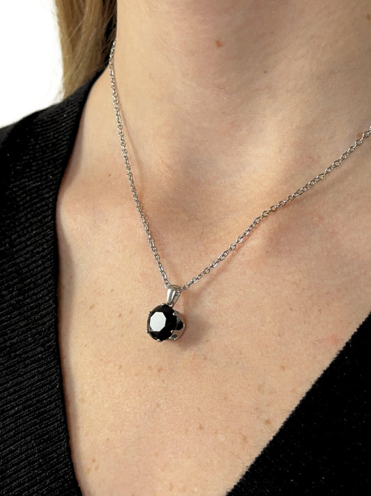 Silver steel necklace with black crystal