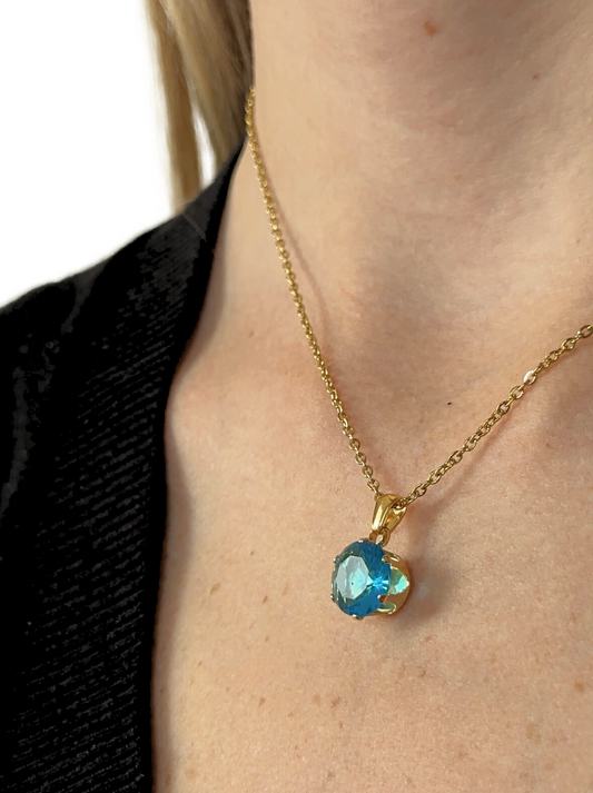 Golden steel necklace with blue crystal