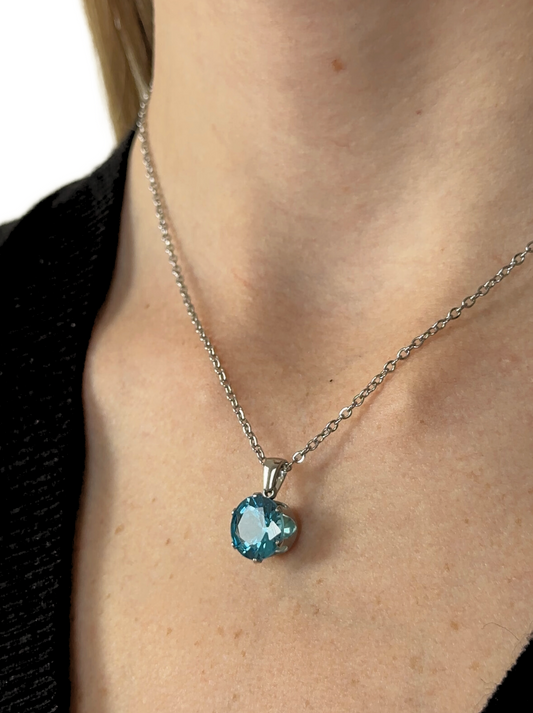 Silver steel necklace with blue crystal
