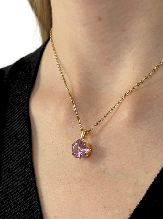 Golden steel necklace with pink crystal