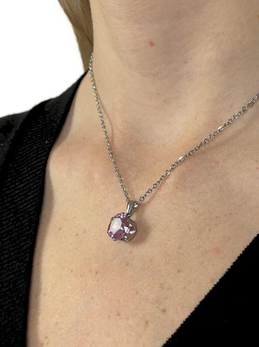 Silver steel necklace with pink crystal