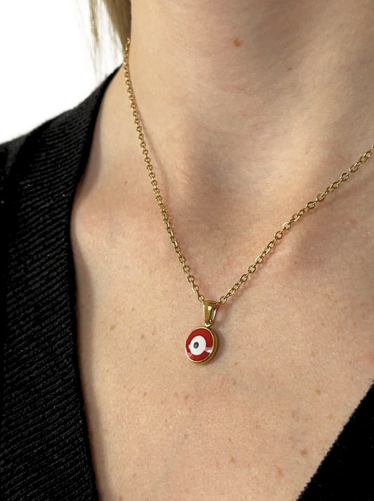Golden steel necklace with red eye