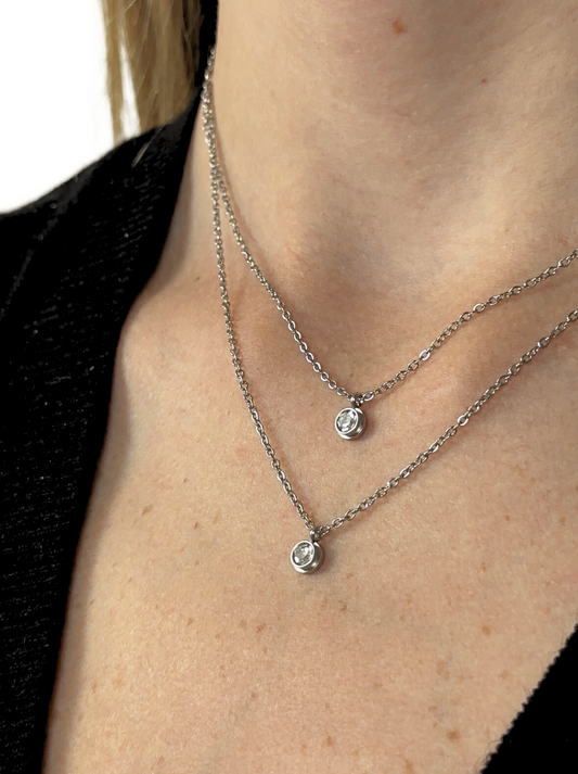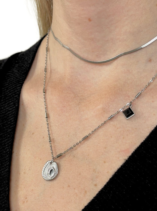 • Silver steel necklace with crystals