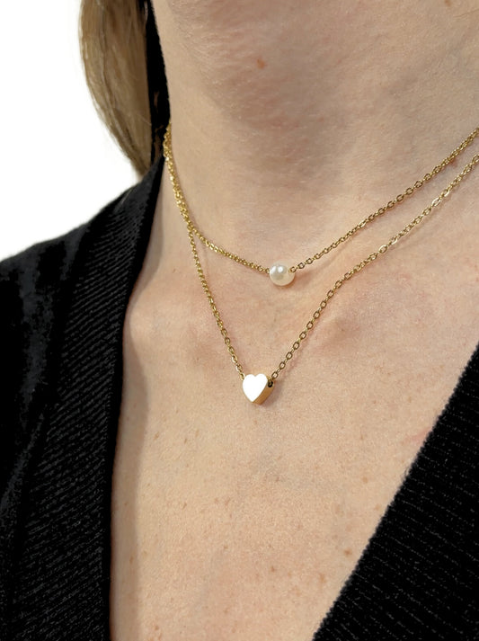 • Golden steel heart and pearl necklace