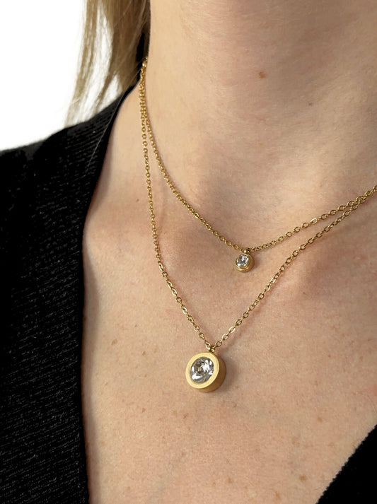 • Golden steel necklace with crystals