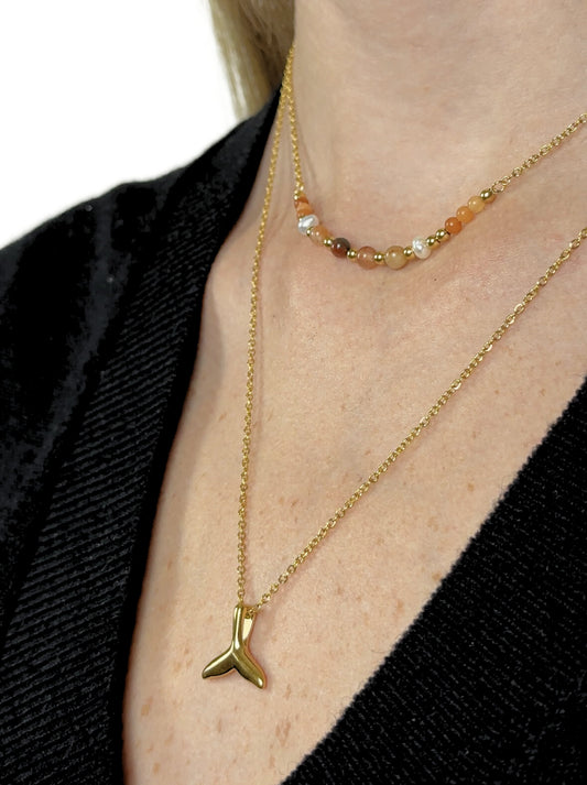 • Mermaid gold steel necklace with beads