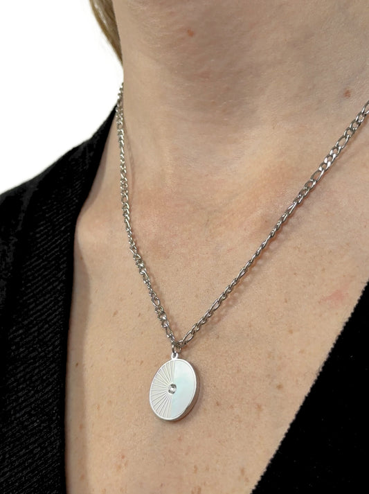 Pearl medal silver steel necklace
