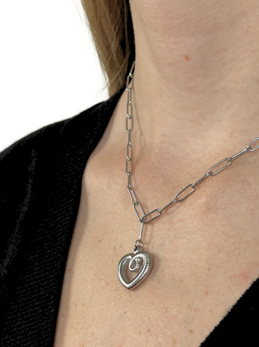 Heart silver steel necklace
