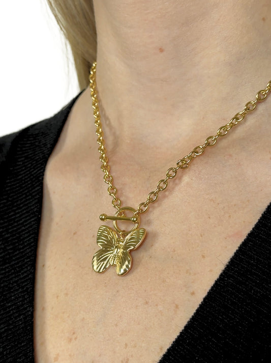 Butterfly Golden Steel Necklace