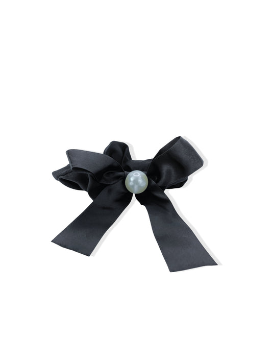 Black hair elastic with bow and pearl
