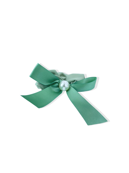 Green hair elastic with bow and pearl