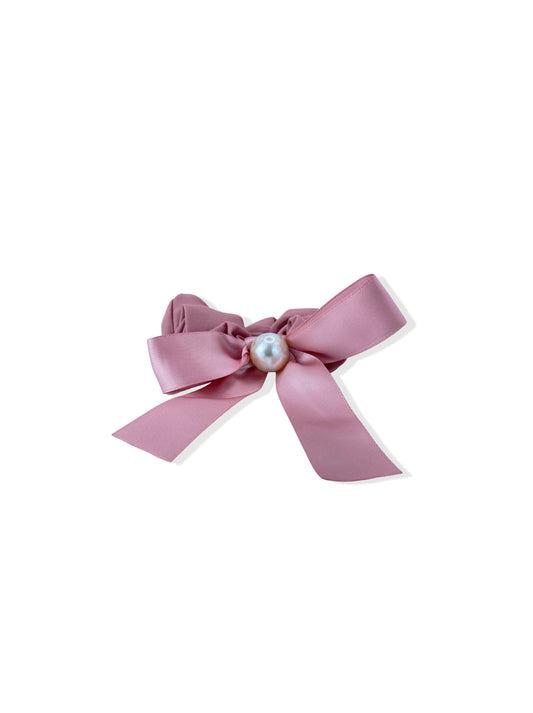 Pink hair elastic with bow and pearl