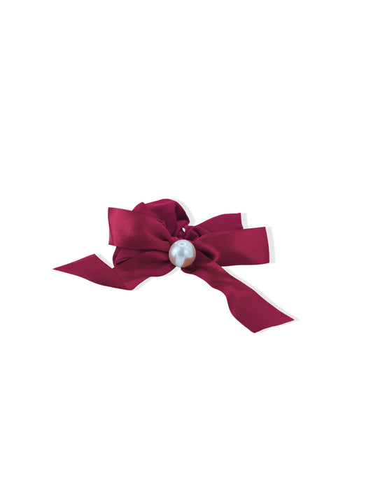 Red hair elastic with bow and pearl