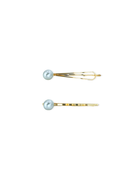 Set of golden hair clips with pearl