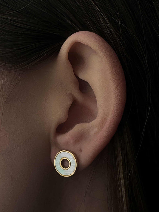 Boucles d'oreilles en acier argenté avec cercle de perles