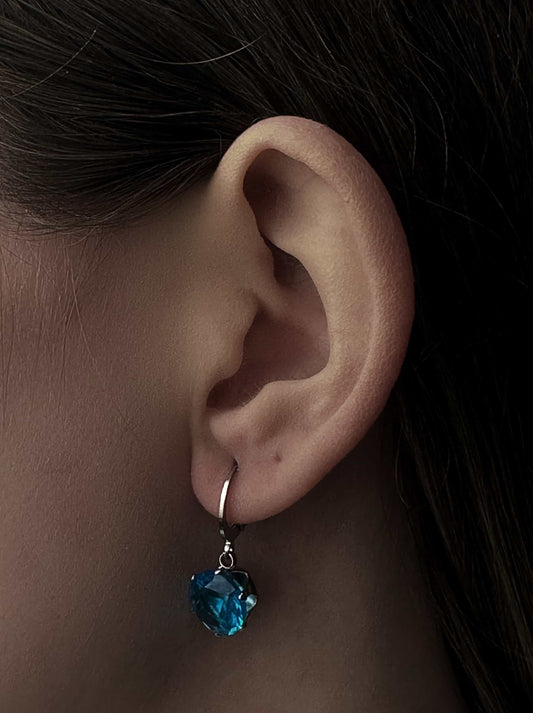 Boucles D'oreilles Acier Argenté Cristal Bleu