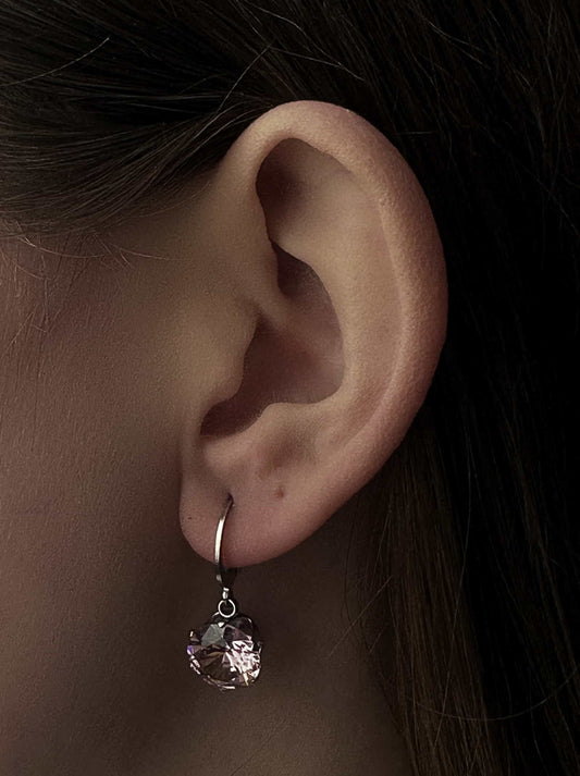 Boucles d'oreilles Acier Argenté Cristal Rose
